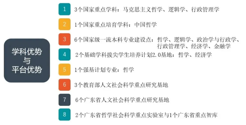 中山大学PPE专业所依托的三个院系,具有强大的教学、科研与实践平台,共拥有: