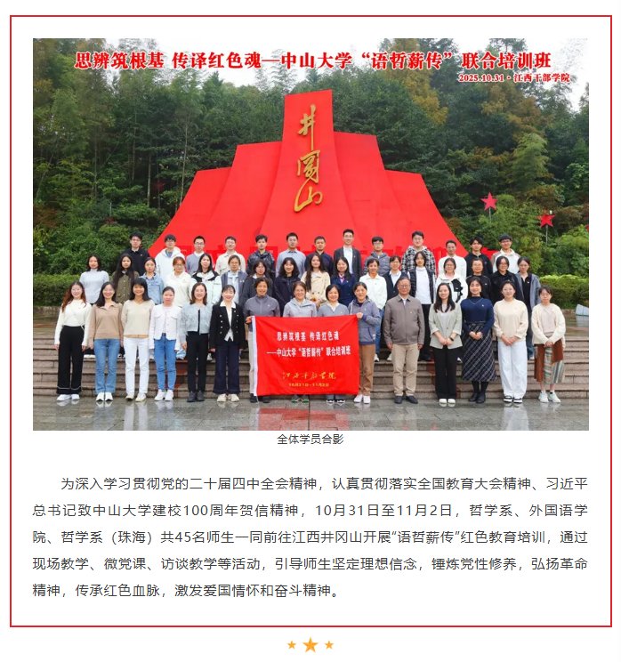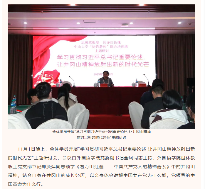 导航痕迹 番号鸽 党建工作 党建动态 思辨筑根基 传译红色魂—— 中山大学“语哲薪传”联合培训班顺利举办 思辨筑根基 传译红色魂—— 中山大学“语哲薪传”联合培训班顺利举办 发布日期:2025-11-16 扫描此二维码分享