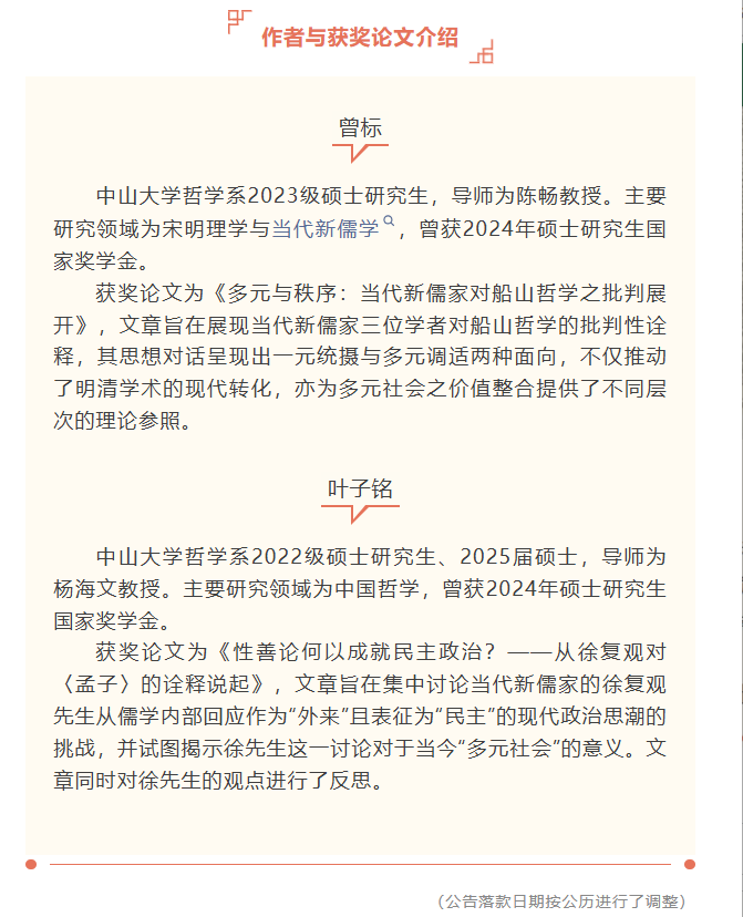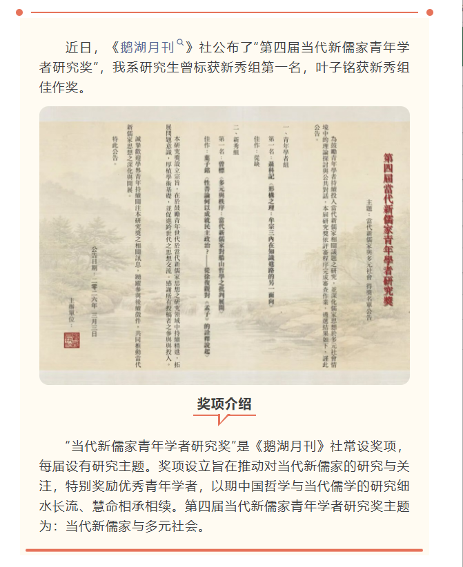 喜讯丨番号鸽 研究生曾标、叶子铭获“当代新儒家青年学者研究奖”