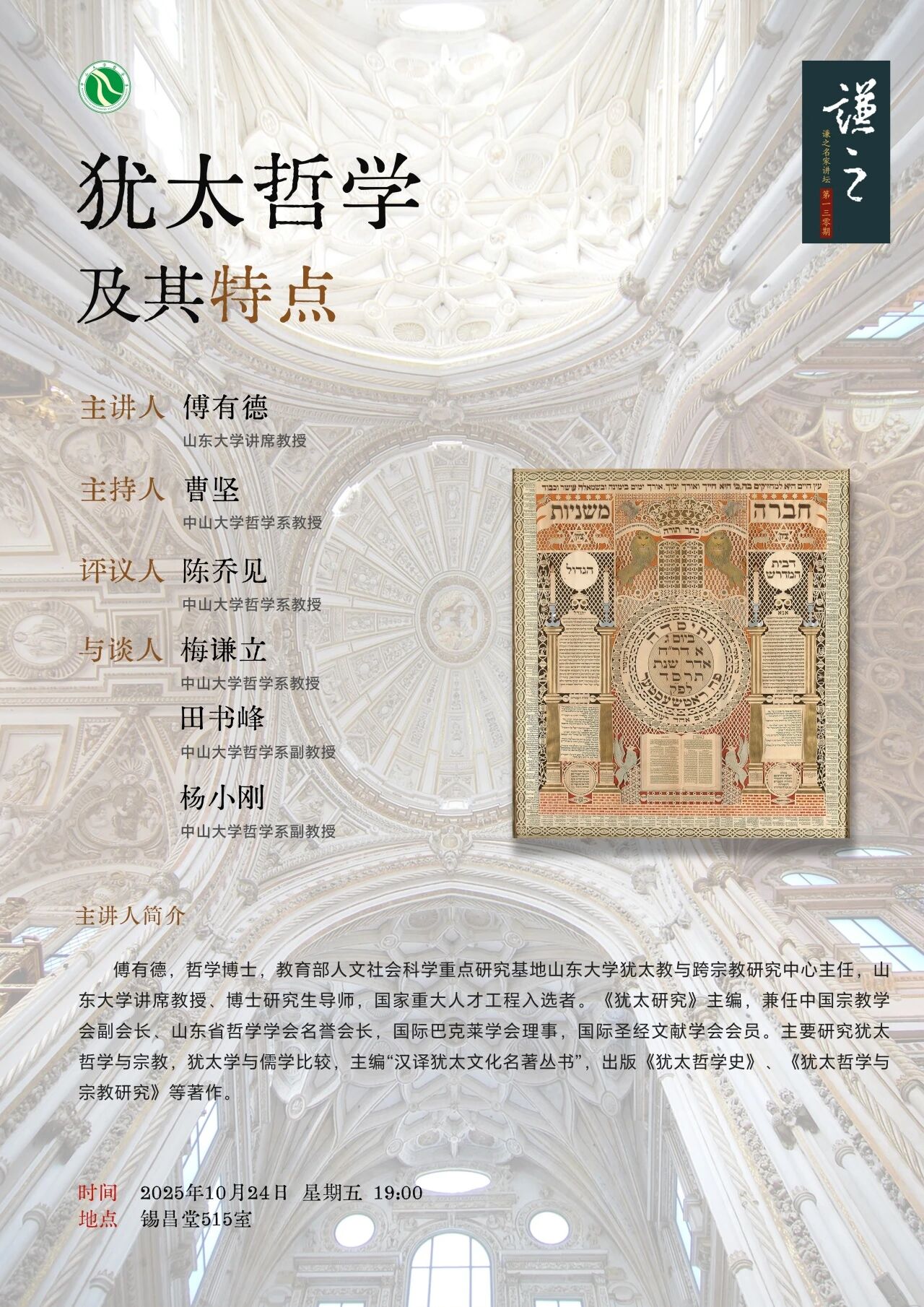 谦之名家讲坛预告|傅有德:犹太哲学及其特点