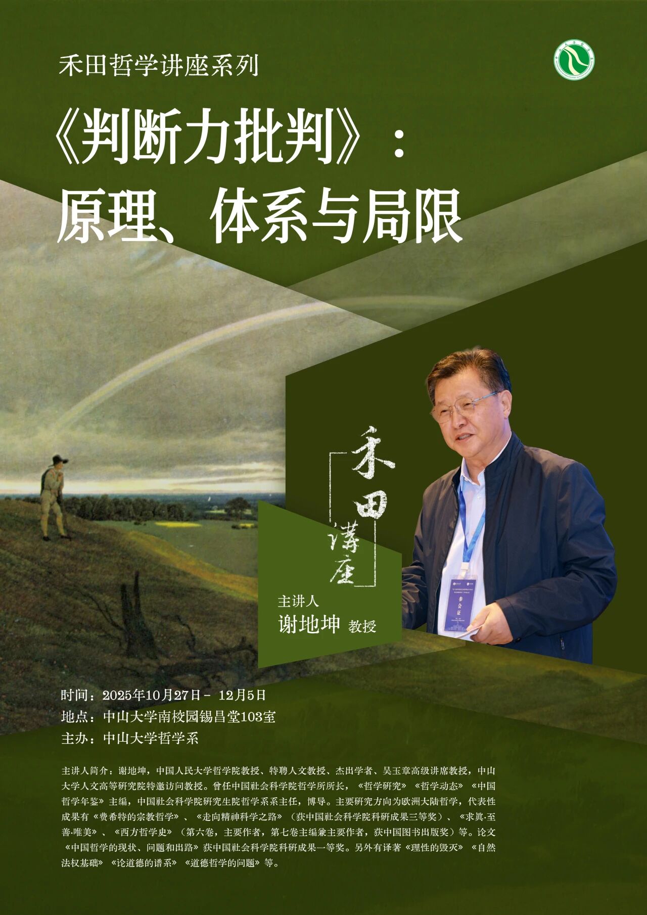 禾田哲学讲座系列预告 | 谢地坤教授《判断力批判》:原理、体系与局限